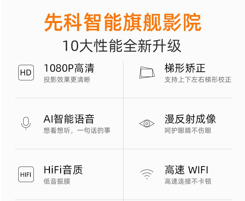 先科4k超高清投影儀家用臥室手機一體機投墻1080p智能電視宿舍學生小型便攜迷你投屏家庭影院辦公培訓投影機